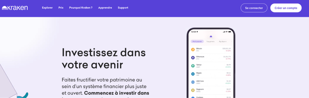 Sur Kraken, vous pouvez acheter et vendre des cryptomonnaies au comptant (spot) ou via des produits dérivés (margin et futures). Plus de 200 cryptos sont disponibles, dont Bitcoin, Ethereum, Avalanche et Chainlink notamment.