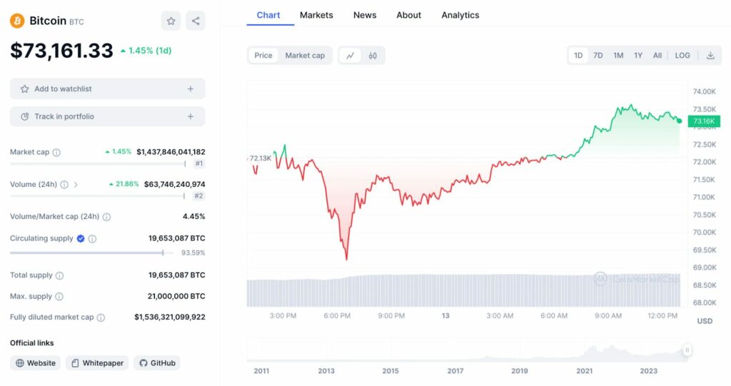 Néanmoins le retracement lié à l’indice IPC a déjà été annulé par une reprise de la croissance qui a conduit le prix de l’actif dominant de l’écosystème jusqu’au point de contrôle de 73 161,33 dollars, impliquant une hausse minimale de 1,45% dans les dernières 24 heures. Selon plusieurs analystes, cette progression rapide est à mettre en relation avec l’afflux de capitaux en provenance des ETF Bitcoinau comptant lancés dans le courant du mois de janvier aux États-Unis.