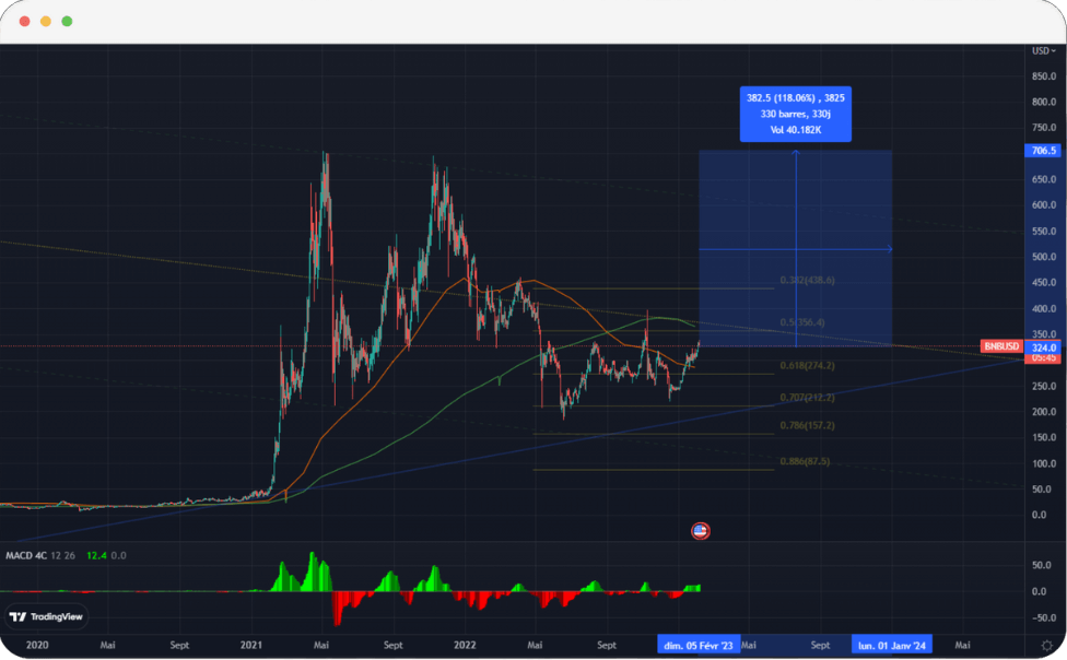 Les paliers de prix à surveiller sur BNB sont les suivants :