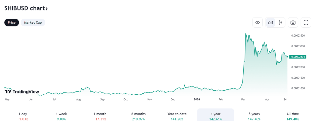 Le cours du SHIB à augmenté de 142% sur une période d’1 an.